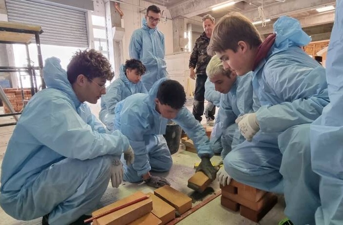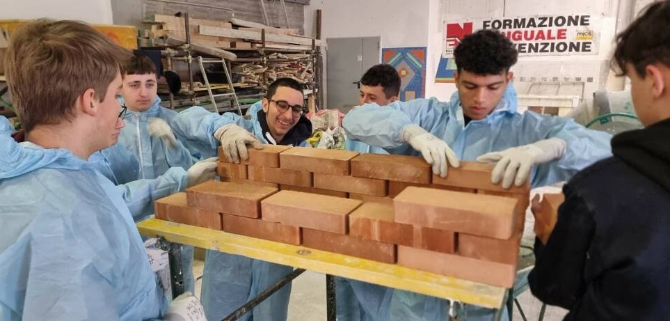 Nel corso della giornata, i ragazzi si sono cimentati nella realizzazione di una muratura in mattoni pieni: dalla preparazione della malta alla costruzione di un piccolo manufatto, eseguito secondo i criteri di una corretta tecnica muraria.