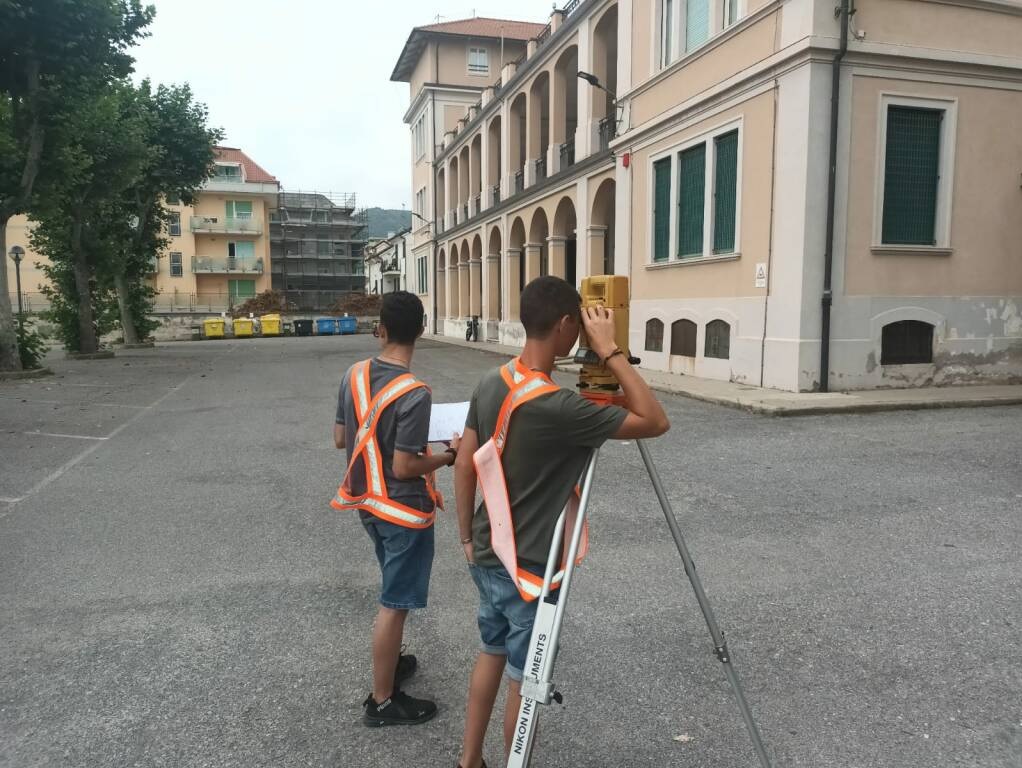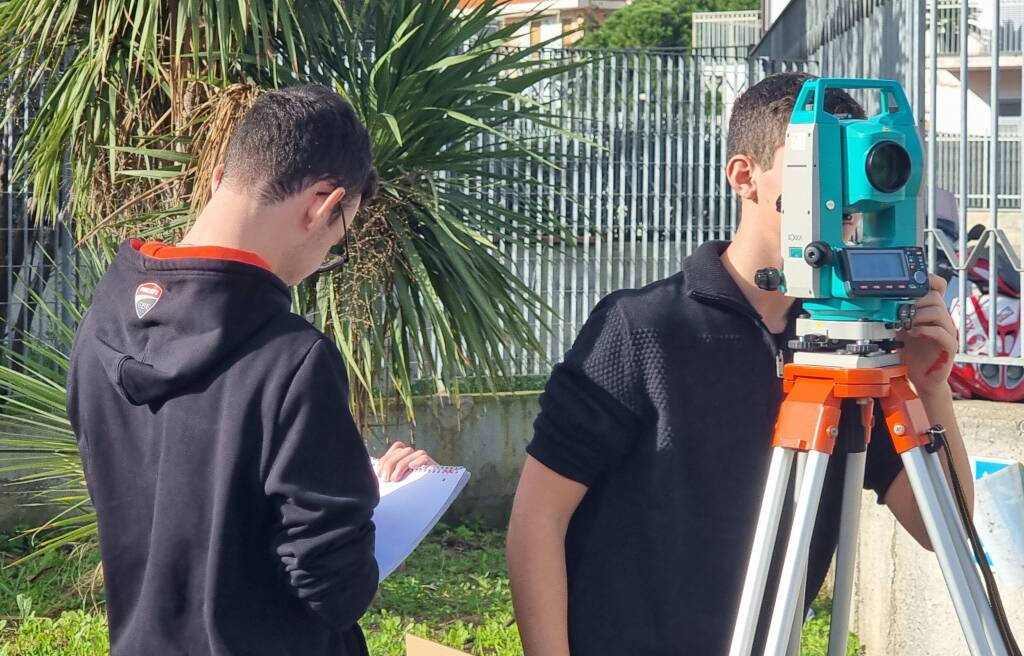 Infatti, le classi 3A CAT e 4A CAT nel luglio scorso hanno partecipato al progetto “Stage di rilievo topografico”, un’iniziativa formativa che ha permesso agli studenti di applicare le competenze apprese in aula attraverso attività pratiche sul campo, utilizzando strumentazione professionale. Il corso, della durata di 30 ore, è stato finanziato con i fondi PNRR. Gli studenti sono stati impegnati nel rilievo approfondito di tutte le aree esterne dell’Istituto. Le zone rilevate hanno incluso tutte le pertinenze dell’edificio e si sono estese sino al tratto di via Aurelia in cui è presente l’ingresso principale dell’Istituto. Sotto la supervisione dei docenti Rocco Frano e Adriano Patitucci, e con il supporto del tecnico Massimo Siri, i ragazzi hanno alternato lezioni teoriche a esercitazioni pratiche, utilizzando strumenti di precisione come stazioni totali, ricevitori GPS e metro laser. L’elaborazione dei dati è stata effettuata con il software Meridiana, offrendo agli studenti una visione completa del processo di rilevazione e restituzione grafica.